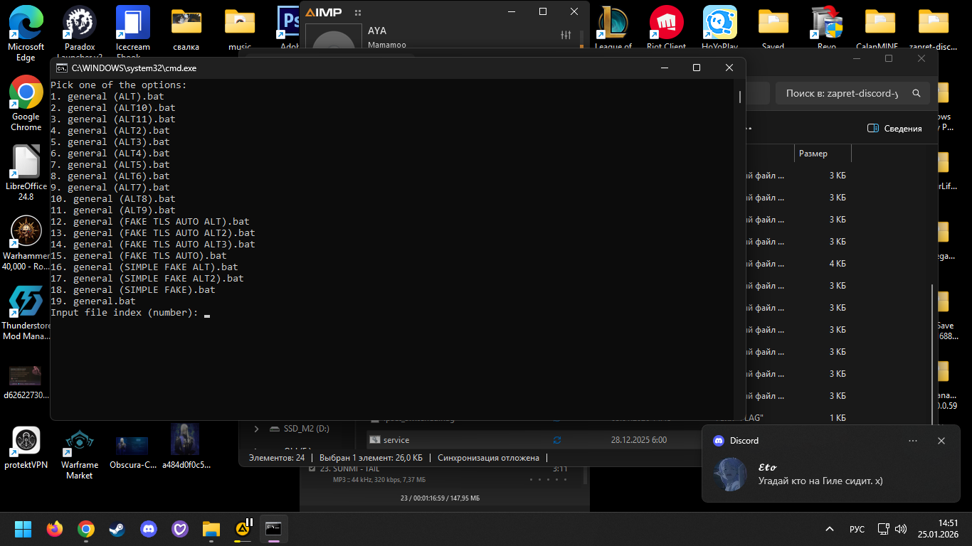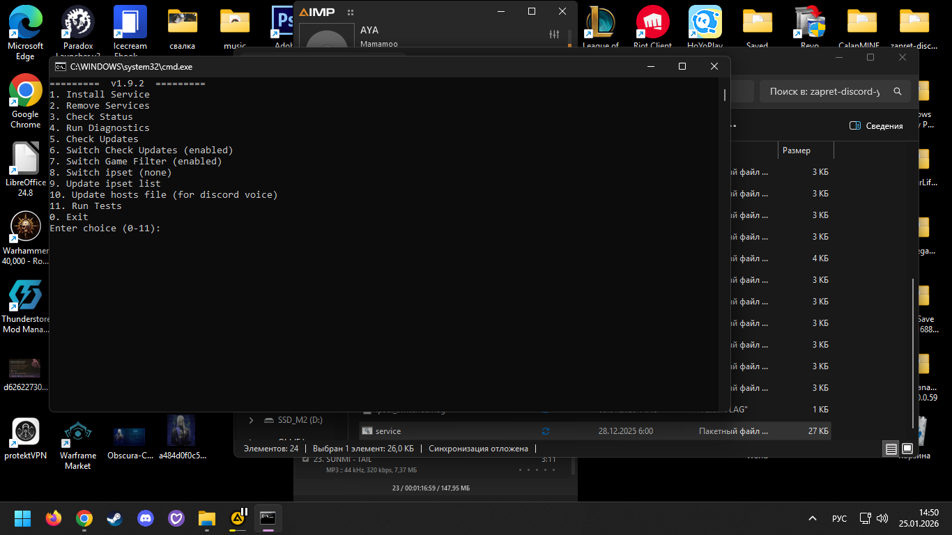 Во-вторых, там приходится перебирать типа обхода? У меня, к примеру, из списка только две-три опции работают. Я запускаю файл сервис и просто перебираю опции, пока что-то не заработает. Только там обязательно удалять нужно, если не работает. Поверх разные не ставить.